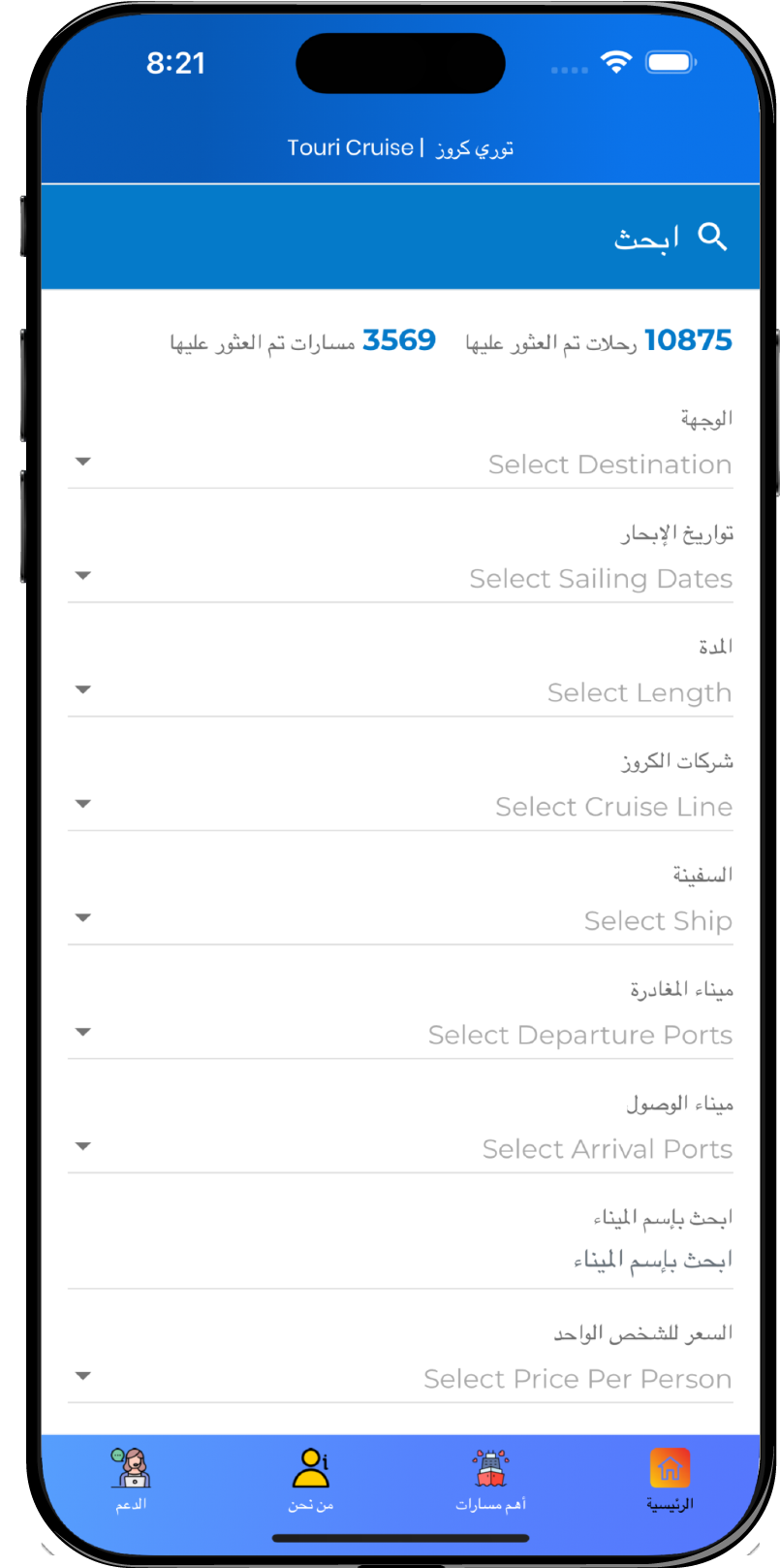 نفخر بأننا أول تطبيق سعودي وعربي وباللغة العربية لحجوزات رحلات الكروز حول العالم!